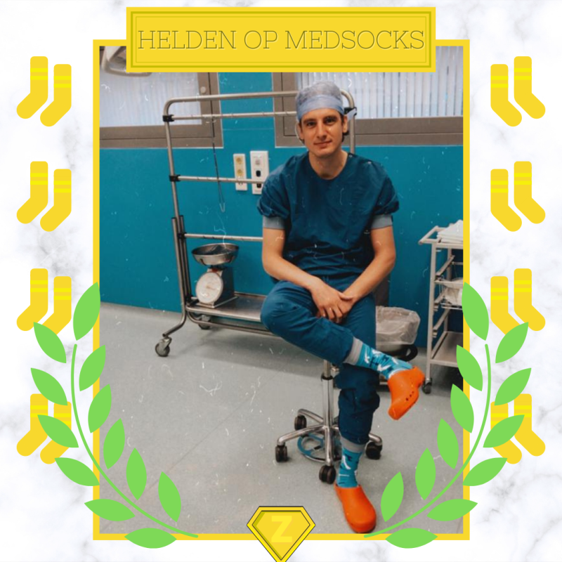 De Traumatologie sokken! Ik draag ze het liefste op de operatiekamer en ik vind het helemaal mooi als ik ze aan heb. De instrumenten die ik dan gebruik, lijken ook op de instrumenten van de sokken! Ik heb al veel leuke reacties gehad van collega’s en in de gangen van het operatiecomplex is meteen duidelijk dat ik van de Traumachirurgie ben!
