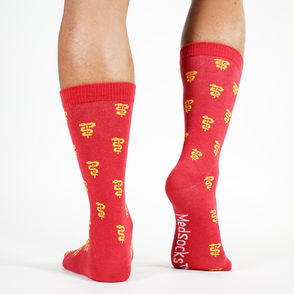 De Aesculaap, hét symbool van de geneeskunst! Deze chique rode esculaap sokken kun je niet laten liggen.