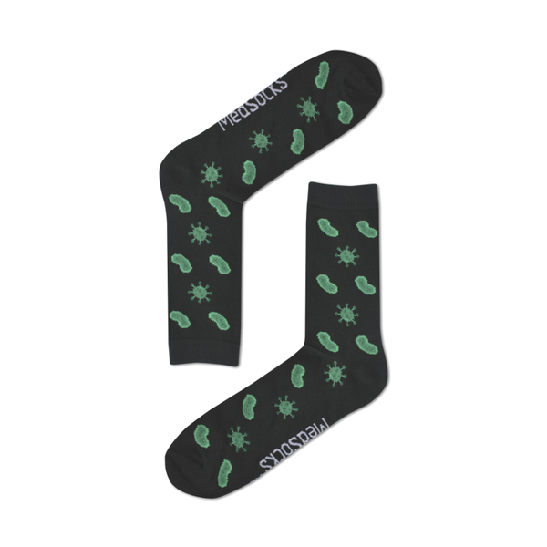 Deze microbiologie sokken zijn toch super leuk?! Mooi donkergroen met felle groene bacterie en virus deeltjes. Werk jij als medisch microbioloog of op een afdeling met virussen en bacteriekweken? Dan zijn deze sokken perfect voor jou.