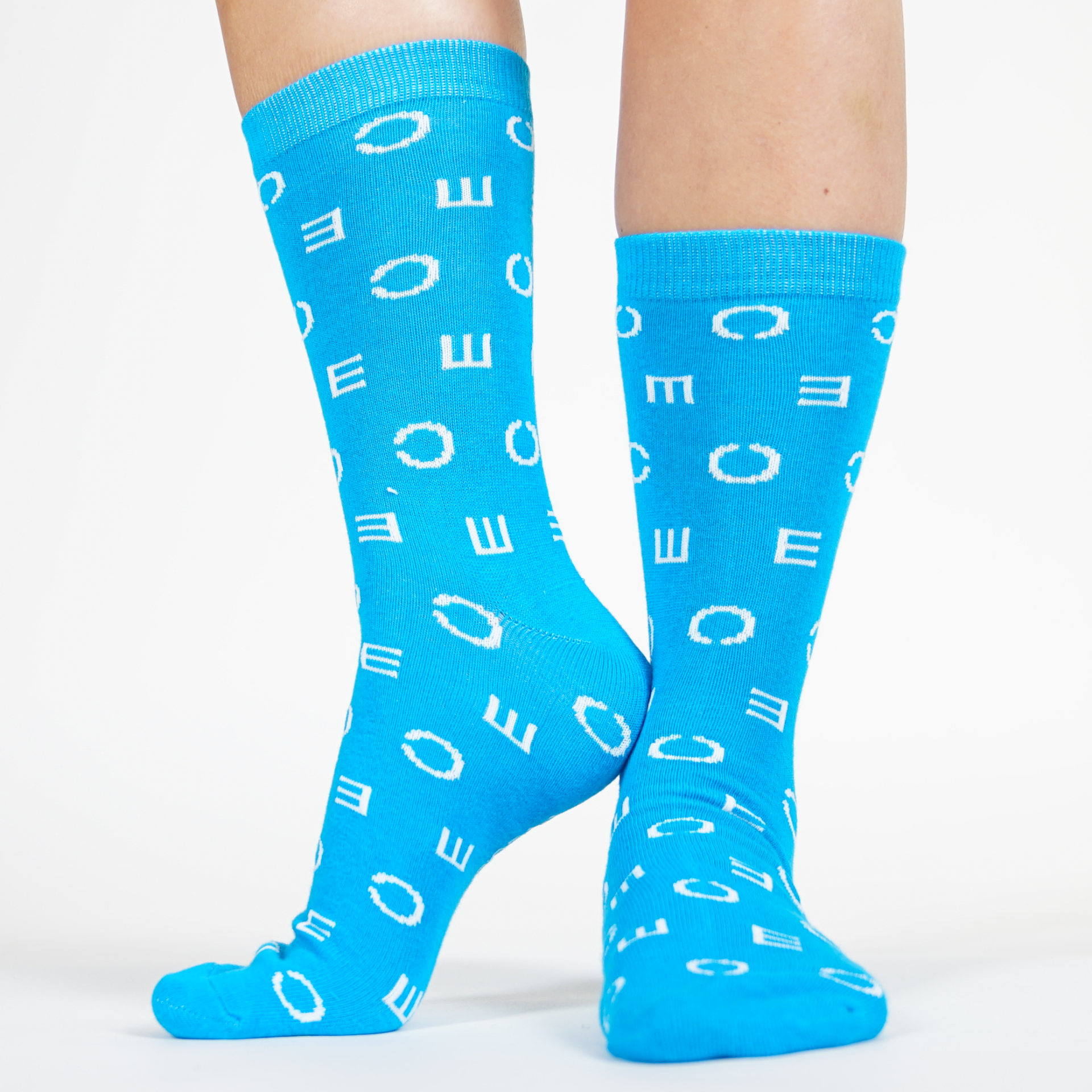 Ik zie, ik zie, wat jij ook ziet: super leuke oogheelkunde sokken. Deze prachtige blauwe sokken hebben leuke patroontjes van een Landold-C-kaart. Daarom is dit een erg leuk cadeautje voor opticiens, optometristen en oogartsen.