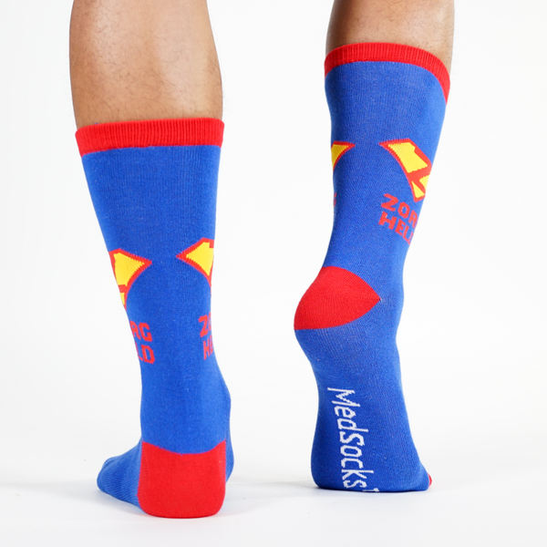 Daarom hebben wij speciaal voor alle helden en heldinnen in de zorg deze zorgheld sokken ontworpen. 🦸♂️