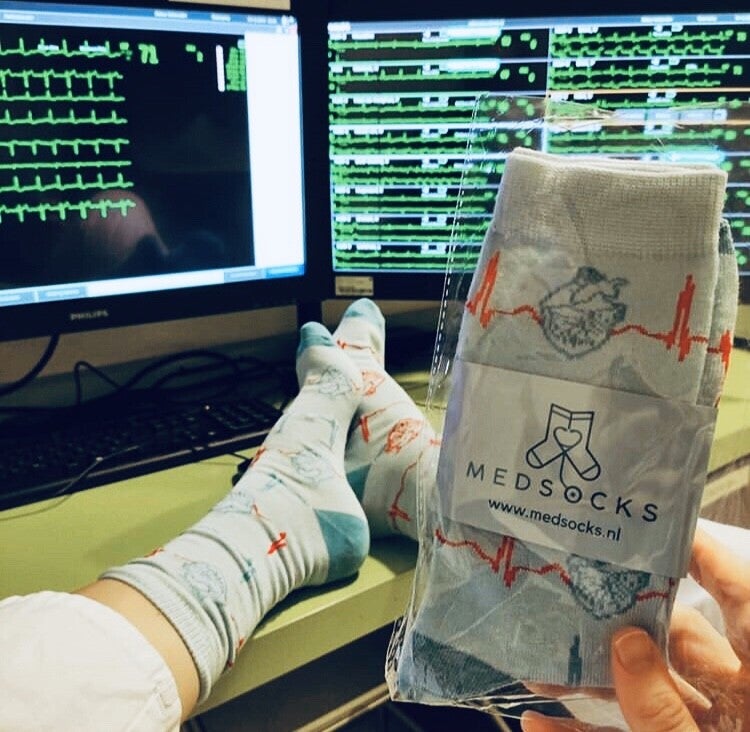 Deze leuke zorgsokken zijn een perfect cadeautje voor iedereen werkzaam in de zorg, maar in het bijzonder de cardiologie!